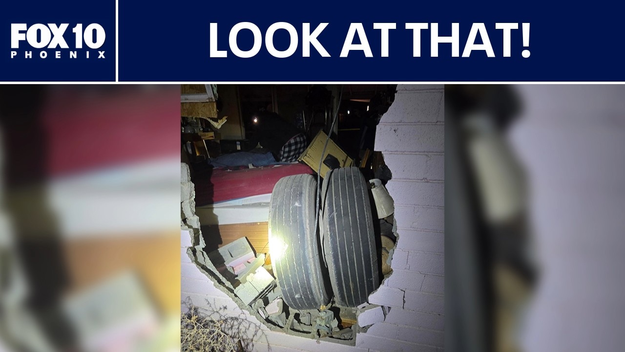 IT was a terrifying close call for a man who lives in Paulden, after two massive tires flew off a cement truck and crashed into his bedroom.