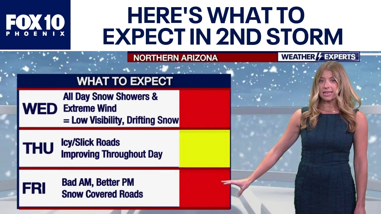A second storm system will bring rain, snow and extreme wind to Arizona on Wednesday, following a Tuesday cold front that dropped 1.3 inches of snow in Flagstaff.