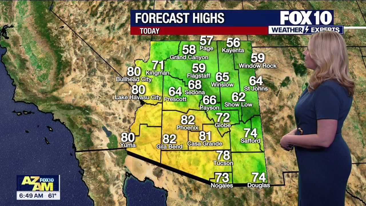 Highs in the Valley will be well above normal on Monday.