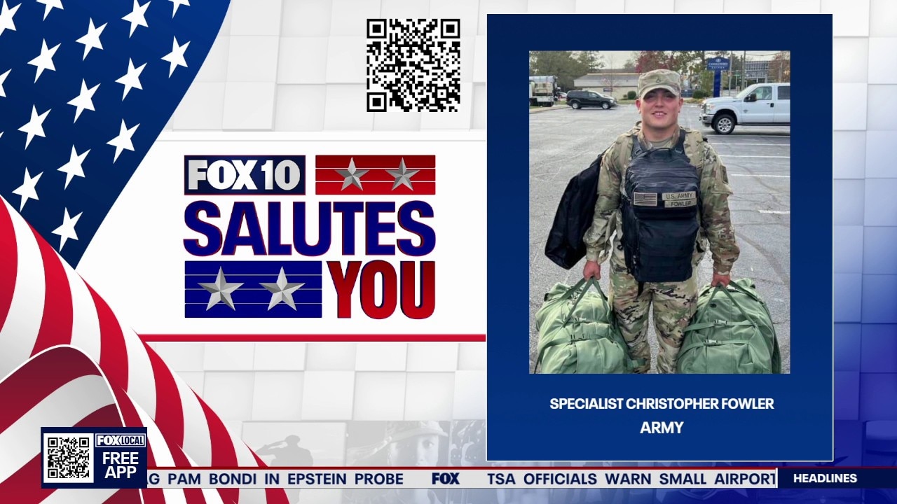 FOX 10 salutes Army Specialist Christopher Fowler. We thank you for your service.