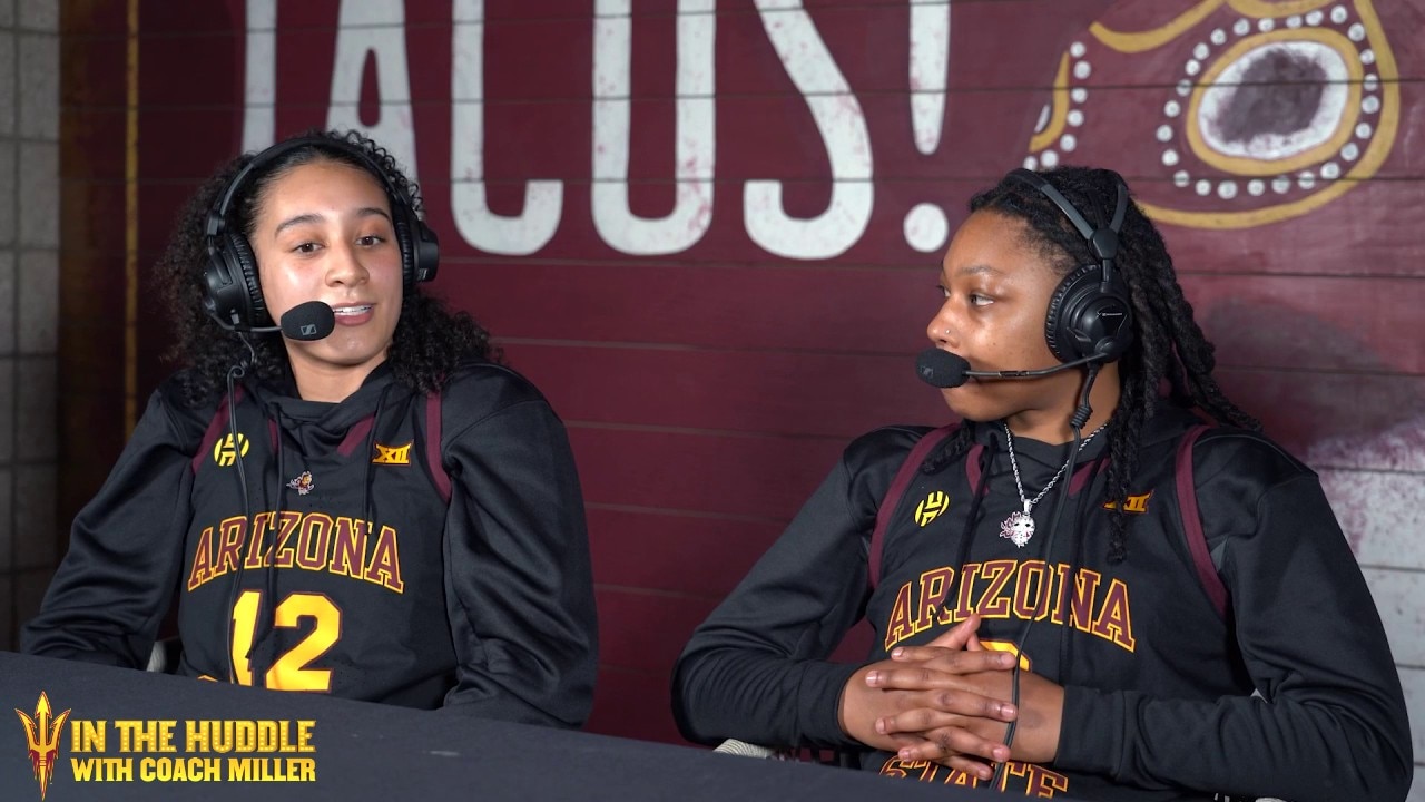 Host Jeff Munn and head coach Molly Miller celebrate the Sun Devil seniors. Special guests include Sun Devil guards Marley Washenitz, Last-Tear Poa, and Gabby Elliott, along with forward Makayla Moore.