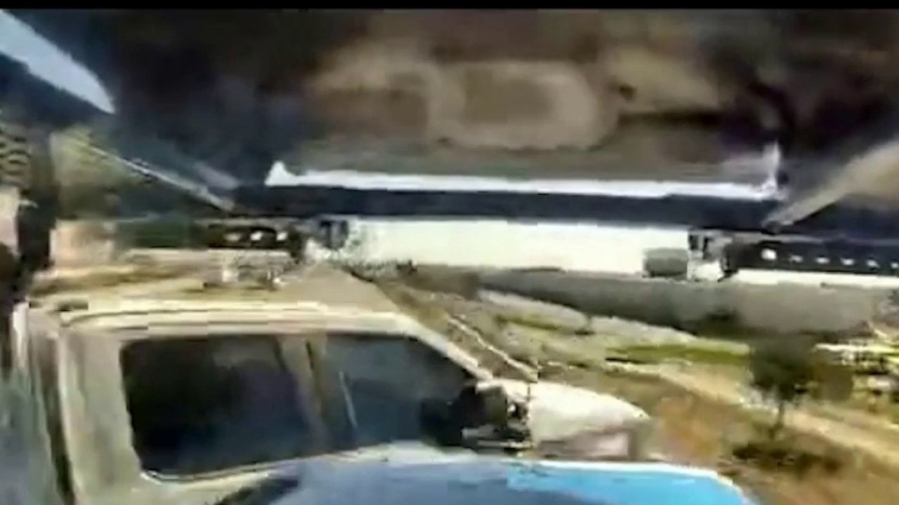 Dramatic dashcam video shows the moment of impact when a pickup truck veered into a car hauling truck along a busy Valley freeway.