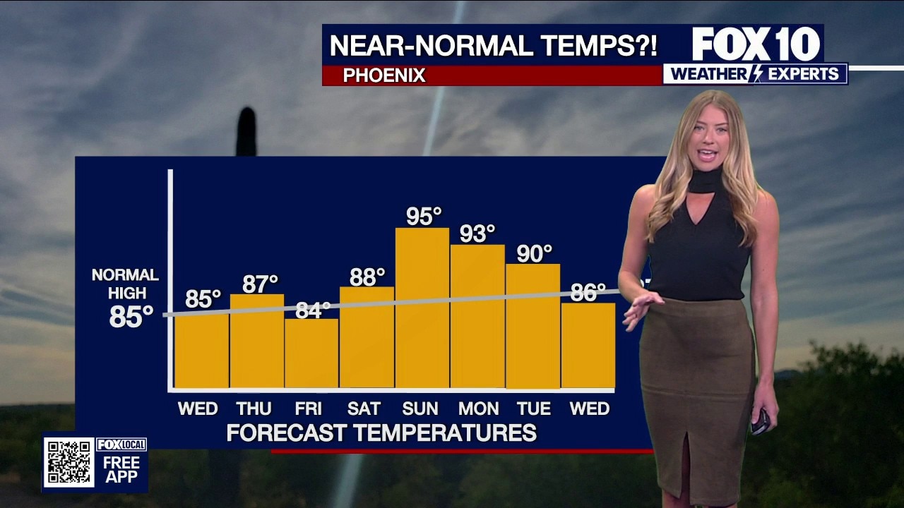 Cooler temperatures arrived Tuesday after Monday's storm system moved through, but it'll slowly warm back up to the 80s this week. FOX 10's Erica Horvatin has more on the cloudy and windy conditions coming later this week.