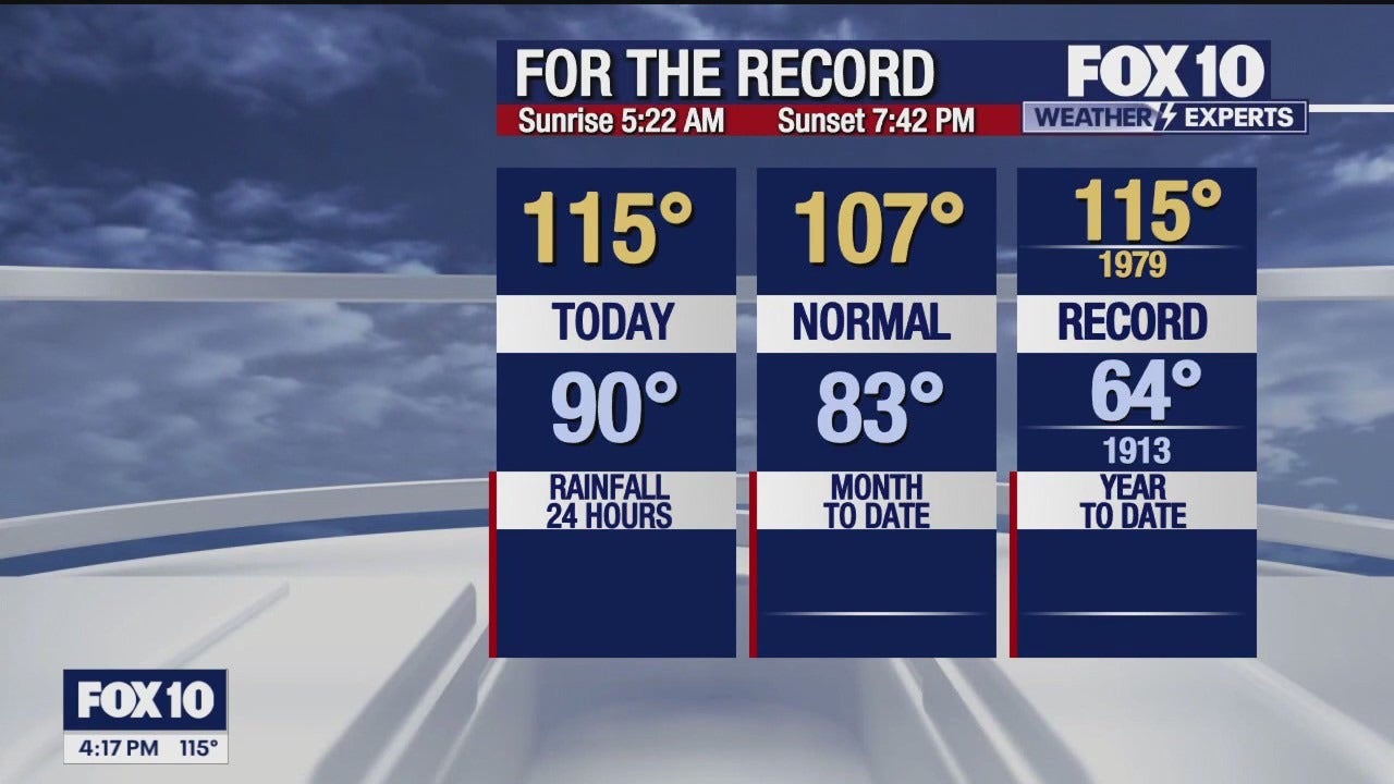 The high was 116 degrees on Monday, which set a new record for the date. The previous record was 115, set in 2013.