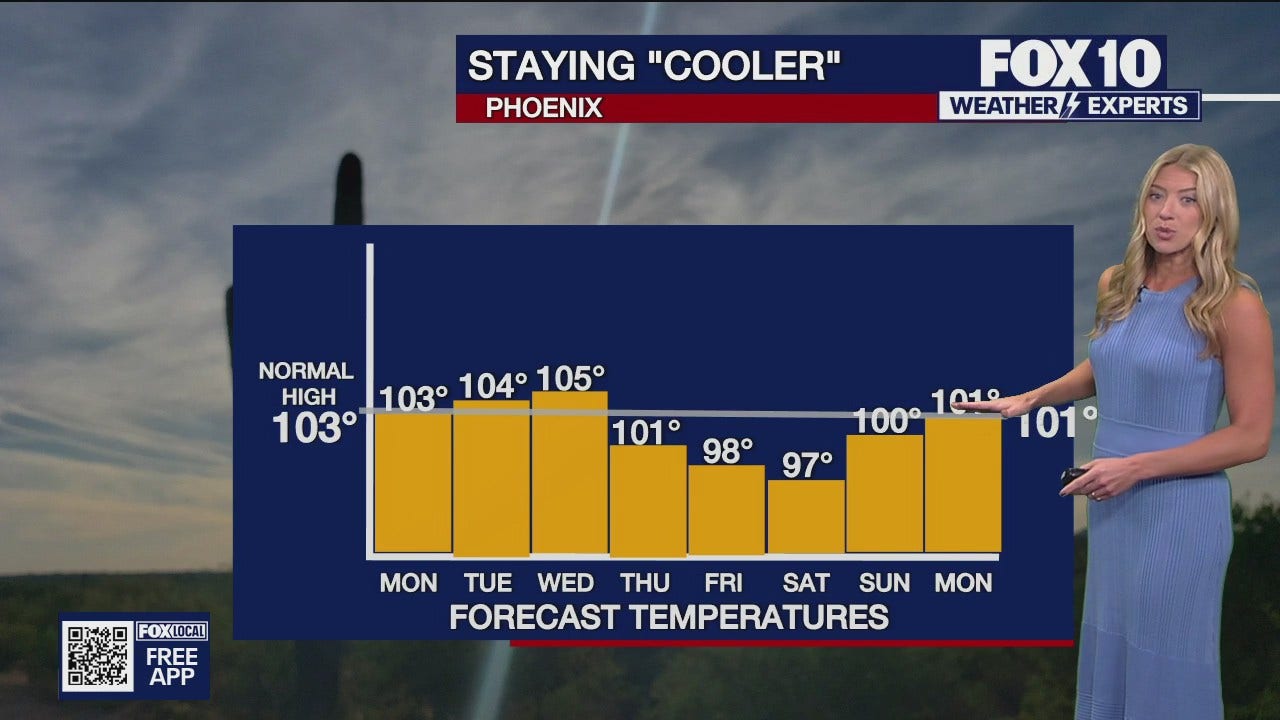 Temperatures will be in the low 100s this week, but a cool down is in store next weekend. Plus, humidity will drop, and the air will be feeling less muggy.