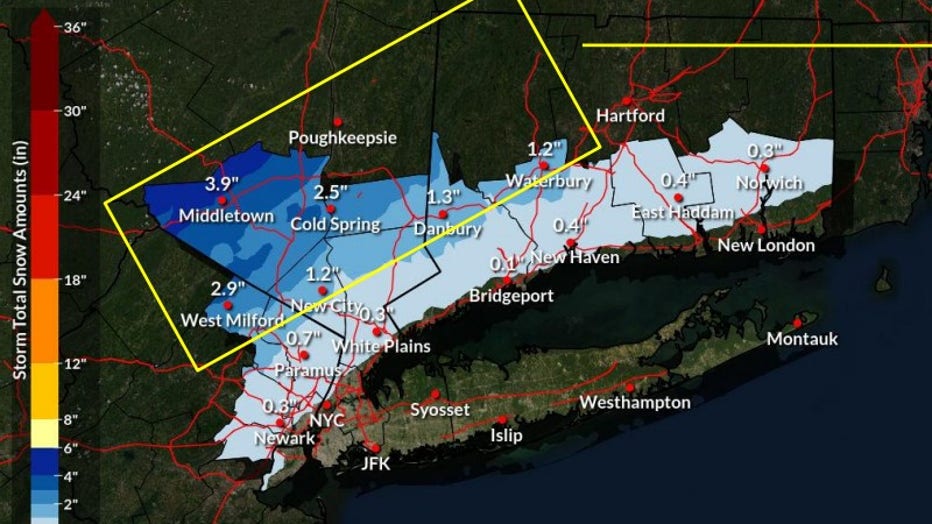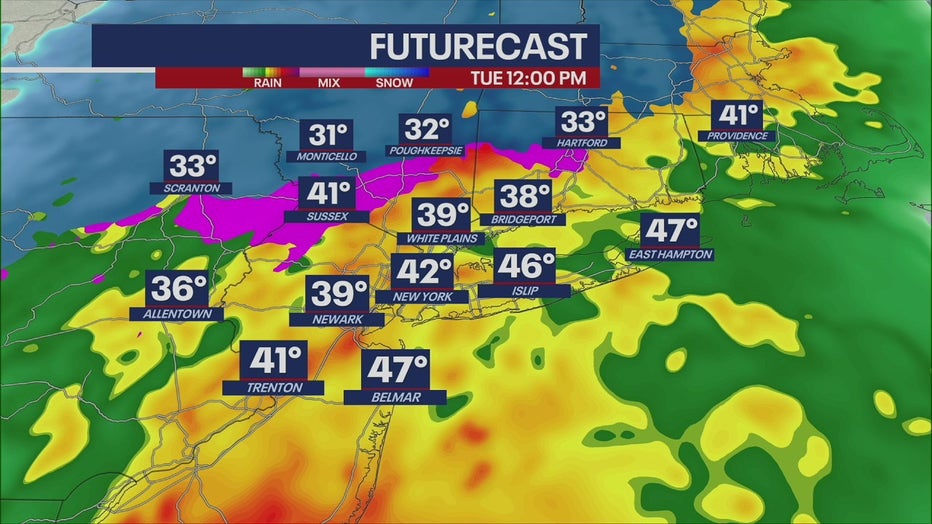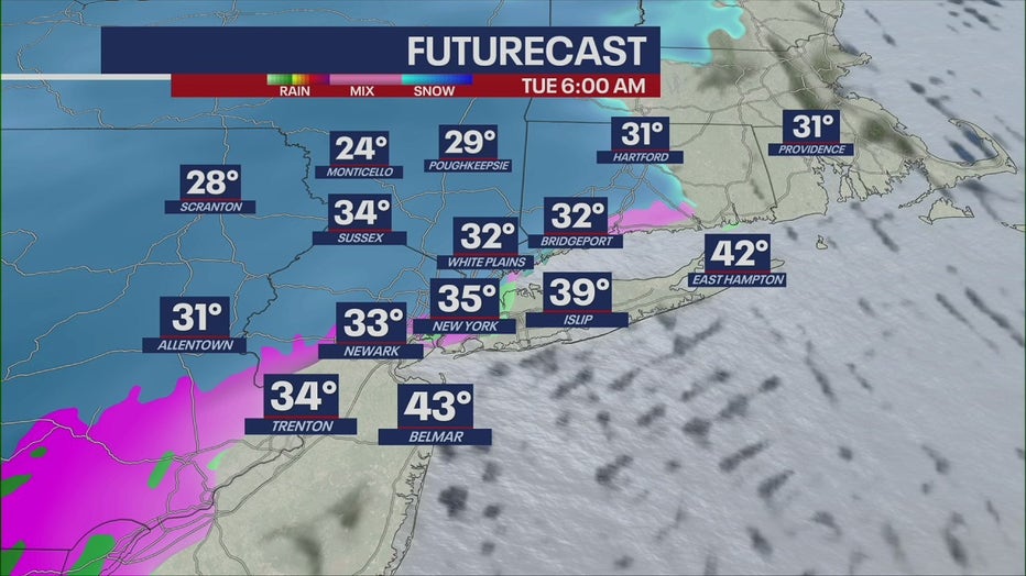 - Rest of the Lower Hudson Valley, much of N.J.: 1 to 3 inches before mixing and changing to rain Tuesday morning
