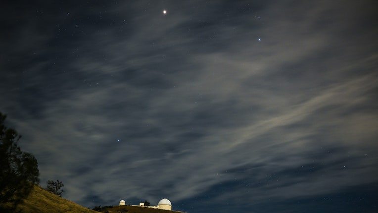 A view of partially stargazing during cloudy weather at Lick Observatory in Mt Hamilton, California, United States as Quadrantids meteor showers peak time on January 3, 2024. (Photo by Tayfun Coskun/Anadolu via Getty Images)